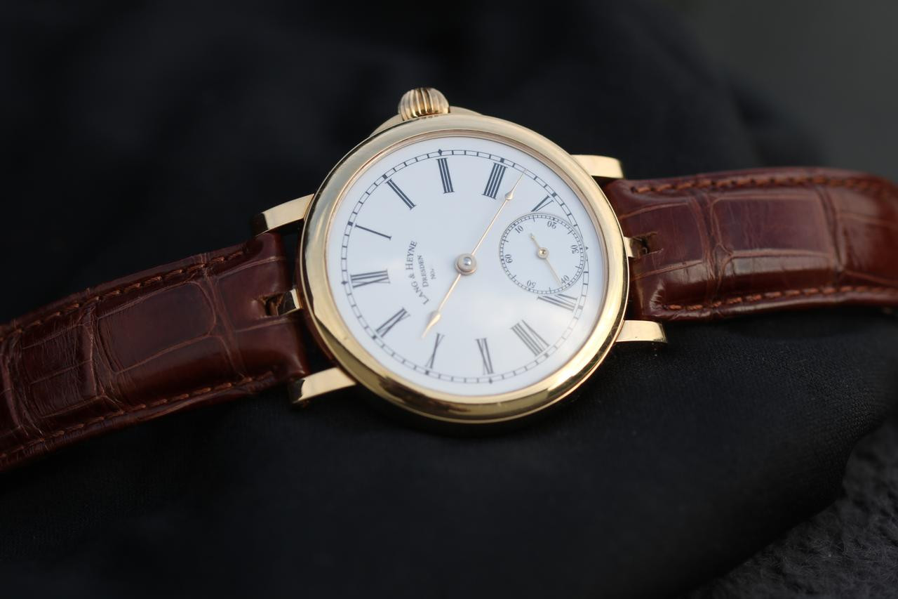 Vielleicht ist es eine typisch persönliche Geschmacksfrage, aber für mich ragt Lang & Heyne immer wieder über die größeren und bekannteren Marken hinaus, denen man dort in Glashütte (Dresden) begegnet. Diese Lang & Heyne konnte ich kurz tragen und dabei einige Fotos machen. Was für eine sublime Uhr – die „Johann“.